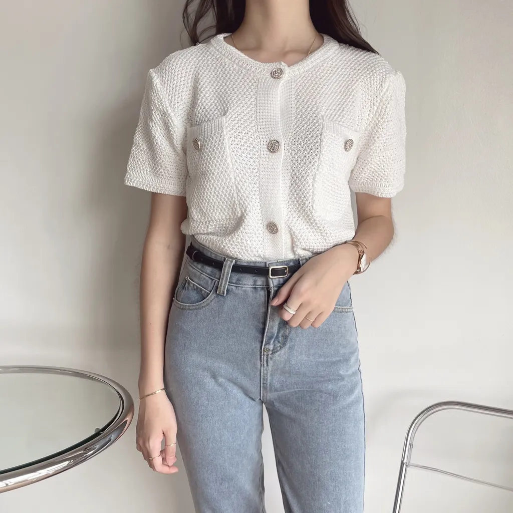 充滿小香高貴氣質的針織衫可自由開合的排扣設計雙口袋也可以放小物🧺單穿/當外套都會讓你很愛的一款